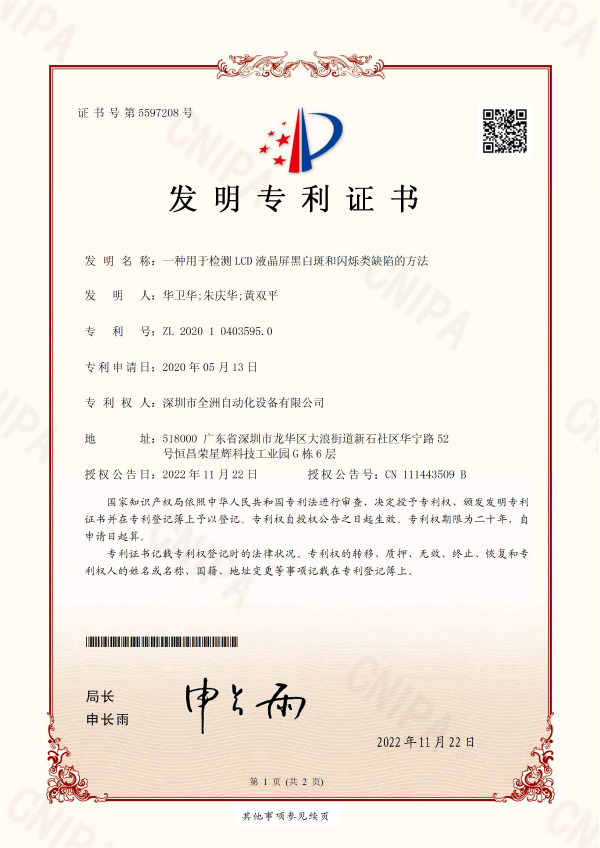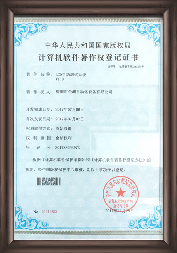 深圳市全洲自動化設(shè)備有限公司是一家集研發(fā)、生產(chǎn)、銷售為一體的國家高新技術(shù)企業(yè),擁有一支強大、資深的技術(shù)研發(fā)團隊,及完善的生產(chǎn)、銷售服務(wù)隊伍。公司致力于LCD和半導體行業(yè)的智能制造,先后推出了全自動貼片、裝腳、點膠、固化、切腳流水線,全自動LCD AOI測試機、COG/COB自動AOI測試機、TFT多畫面測試機。并破解行業(yè)難題,研發(fā)了分辨率達微米級的LCD整模圖像檢測機等高端設(shè)備,可應用于LCD/TFT/集成電路/晶圓檢測等領(lǐng)域,有效提升生產(chǎn)和測試效率,保障產(chǎn)品品質(zhì)。受到了新老客戶的歡迎和好評,與業(yè)內(nèi)眾多知名企業(yè)建立了長期合作伙伴關(guān)系。公司秉承“誠信經(jīng)營、科技創(chuàng)新”的經(jīng)營理念和“團結(jié)、合作、進取”的企業(yè)精神,竭誠為客戶提供優(yōu)質(zhì)的產(chǎn)品,完善的技術(shù)服務(wù)!讓我們攜手,互利雙贏,共同發(fā)展,一起邁向企業(yè)美好的新未來、新坐標!